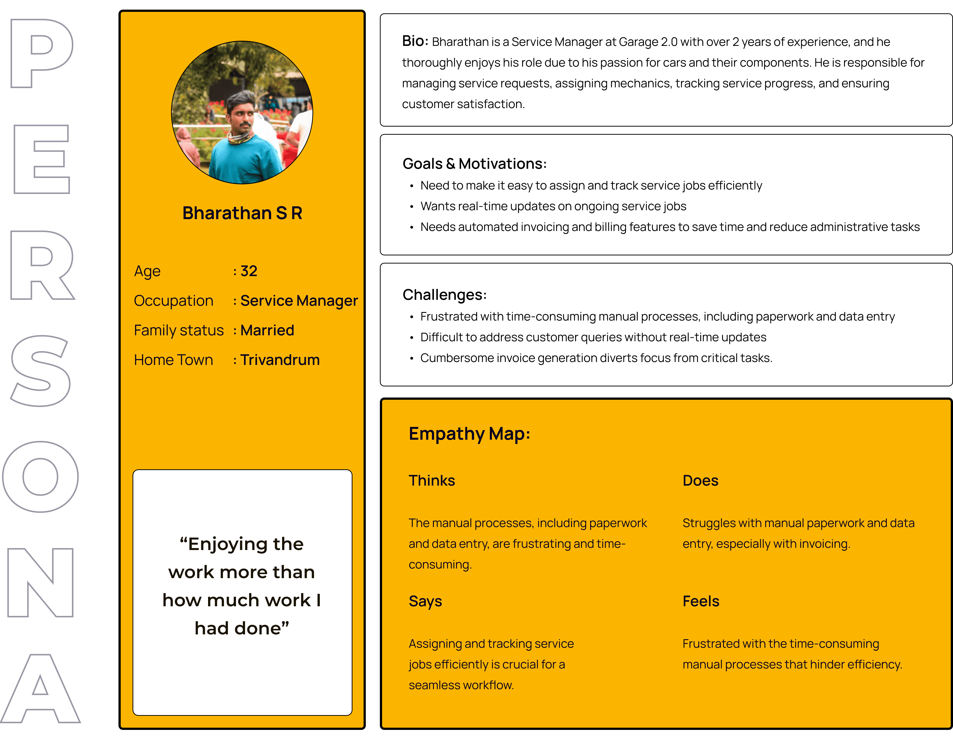 The user research for the Automotive Service Management App aims to gain deep insights into the workflow, preferences, and pain points of Service Managers in automotive service centers. Through interviews and observations, we aim to identify pain points and preferences to inform the development of a more efficient and user-friendly Automotive Service Management App.