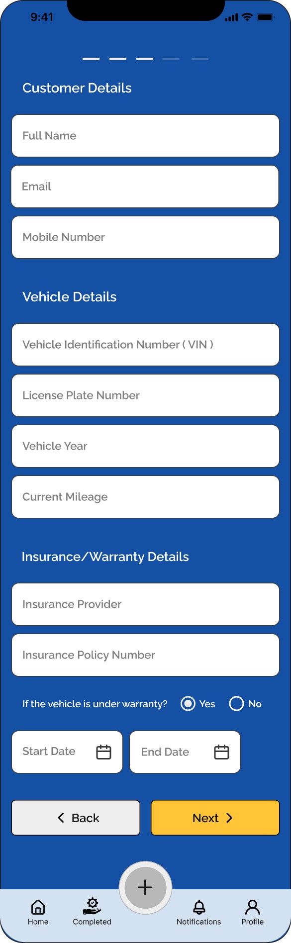 User need to acquire the details of the customer and their vehicle for job recording process